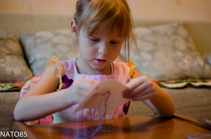 Лиза не очень любит с ней заниматься самостоятельно, но если я нарисую контур чего-либо. то все сразу становится интереснее)