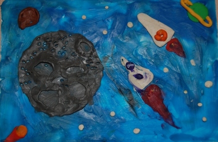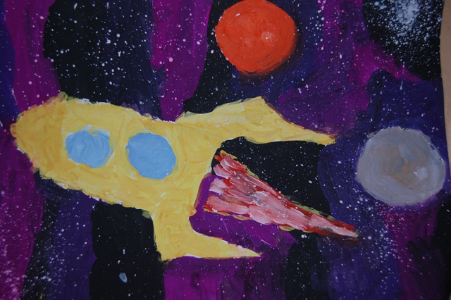 Нарисовали космическую картинку на занятиях по рисованию по моему предложению. Это так, я просто хвастаюсь)) смотрите картинку вверху поста