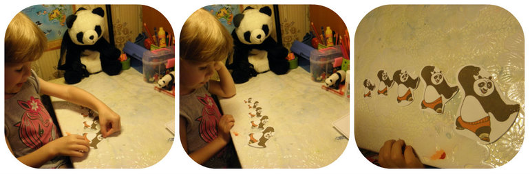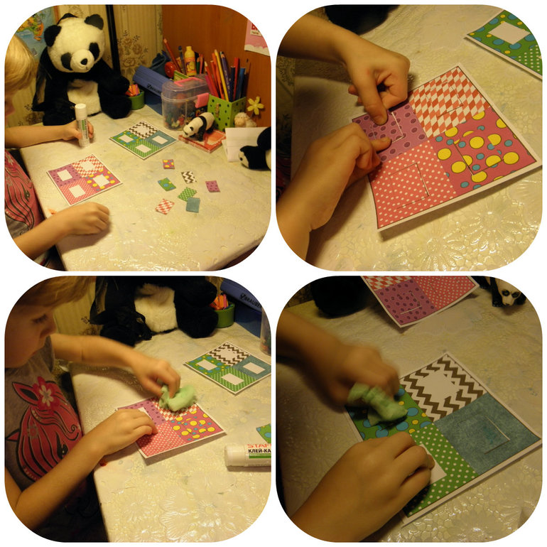 Заплатки, делали одеялки для панд, они порвались, нужно аккуратно приклеить заплаки