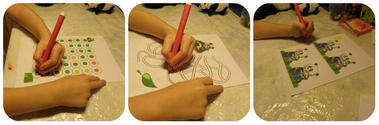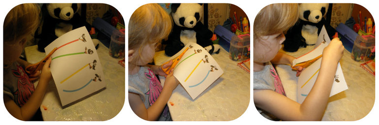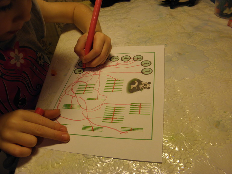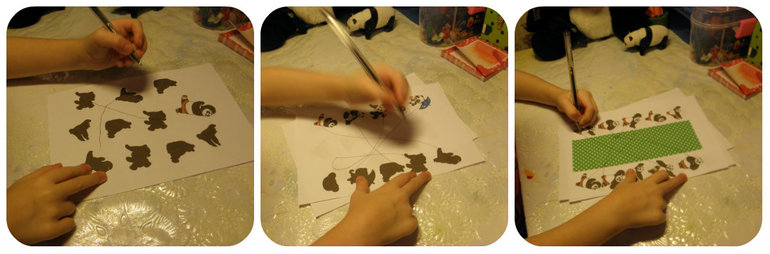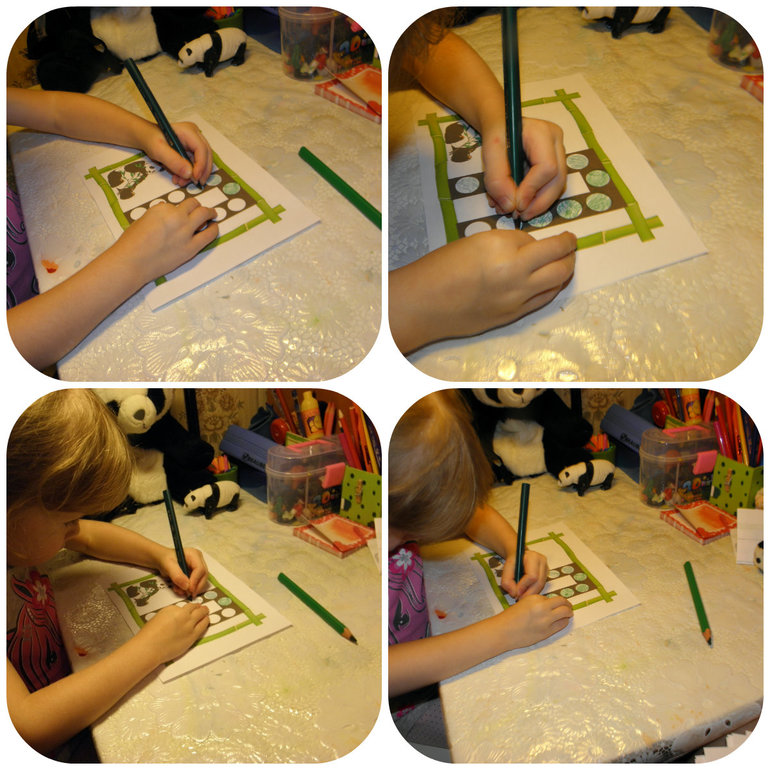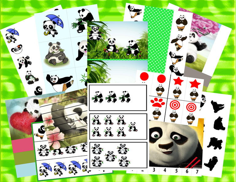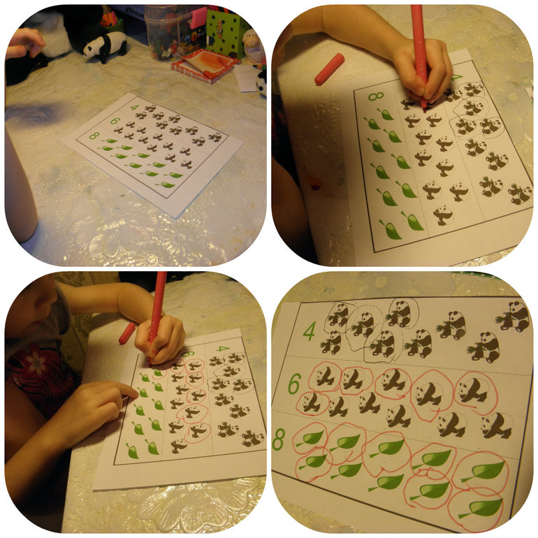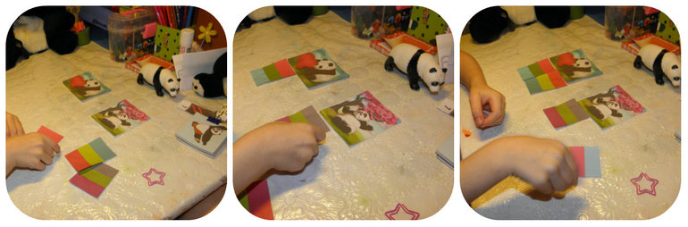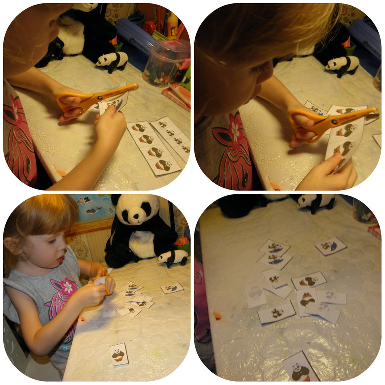 память, показываю картинку , закрывает глаза, переворачиваю, Поля определяет какой панды не хватает