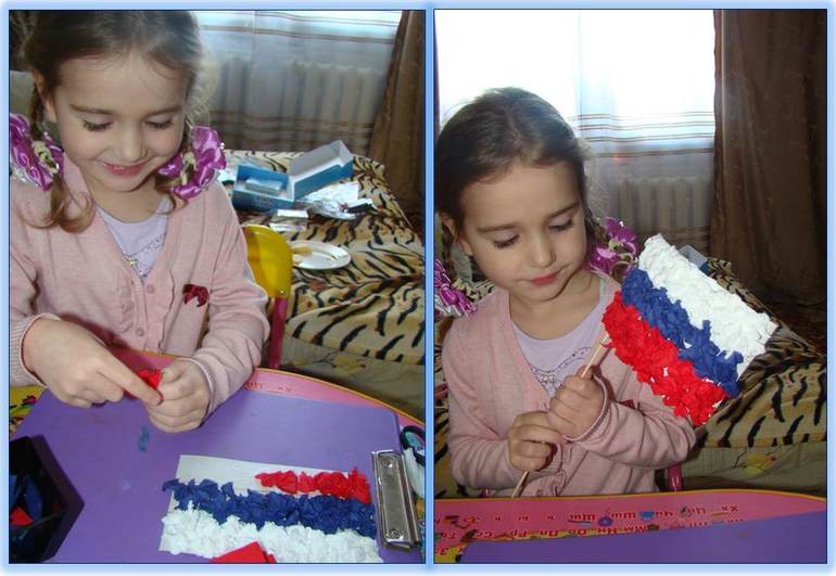 Короче, флаги обсудили и сделали наш, самый красивый - российский флаг (теперь на парад с ним собирается идти)