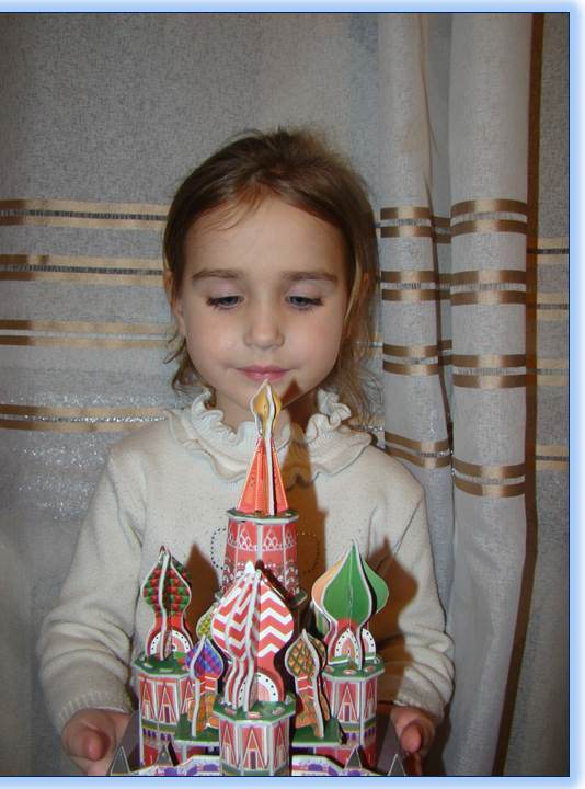 Потом мы поговорили о городах, достопримечательностях, рассмотрели картинки в Интернете самых главных достопримечательностей россии - Кижи, Родина Мать, Петергоф и, конечно, Собор Василия Блаженного: