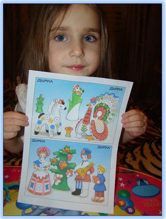 А ешё Дымковские игрушки рассмотрели - аналогичное задание с заплатками: