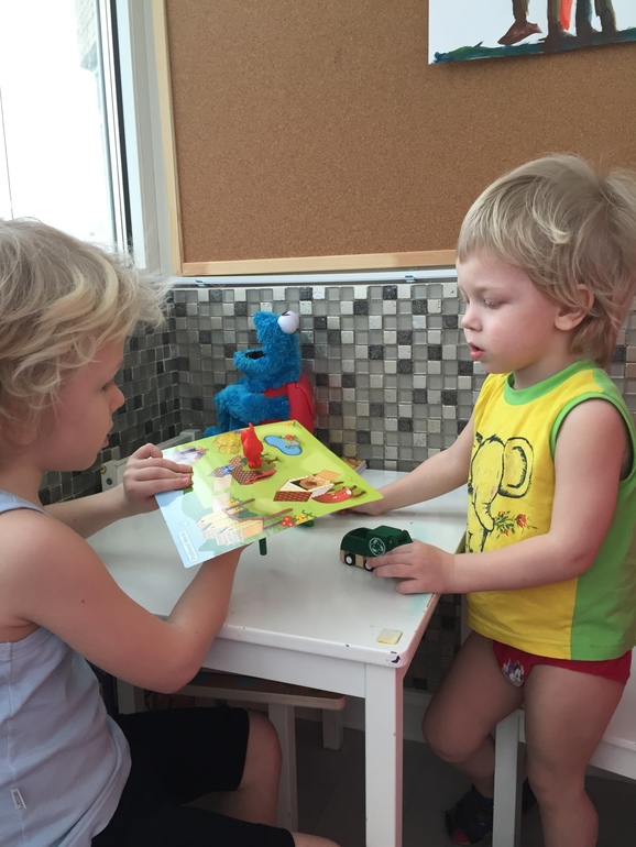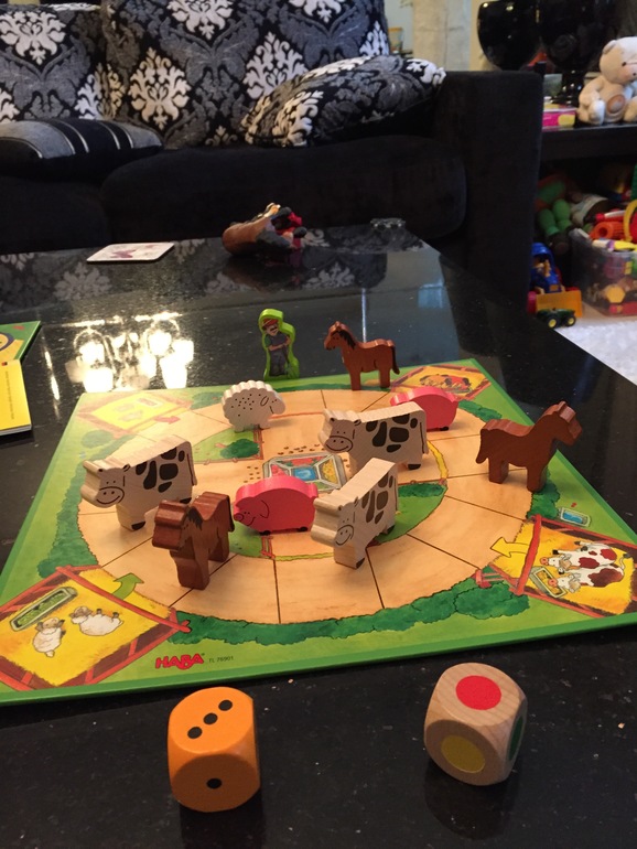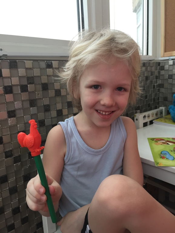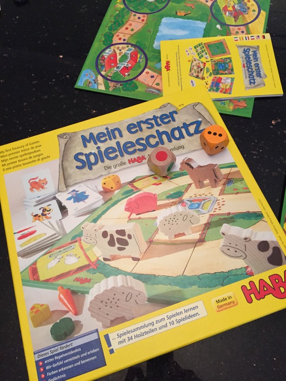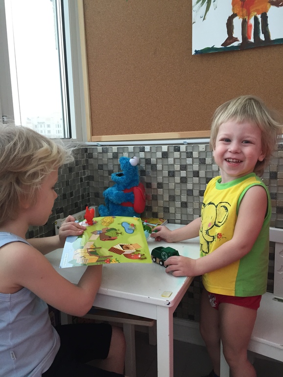 еще пытались поиграть в настольную игру, но правила пока не понятны, зато Степа с удовольствием потискал деревянные фигурки))