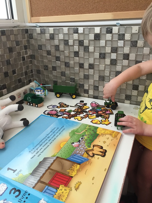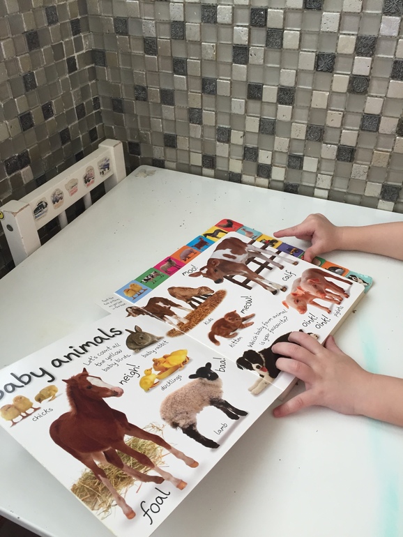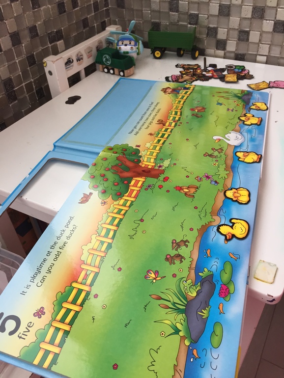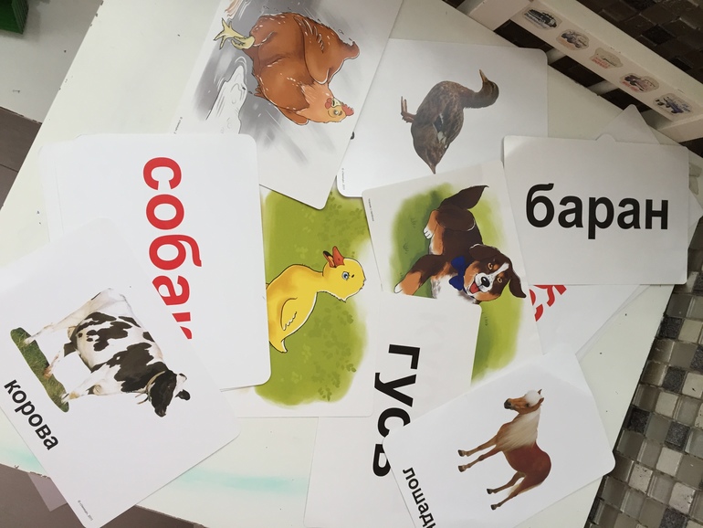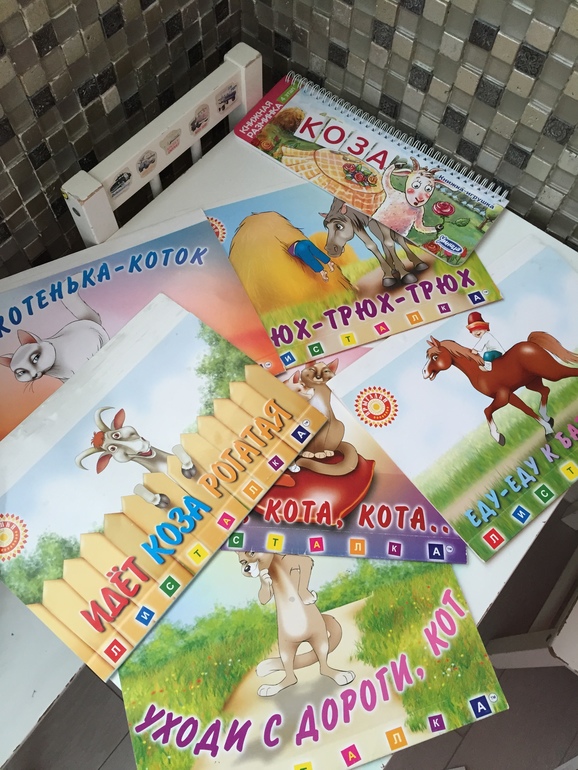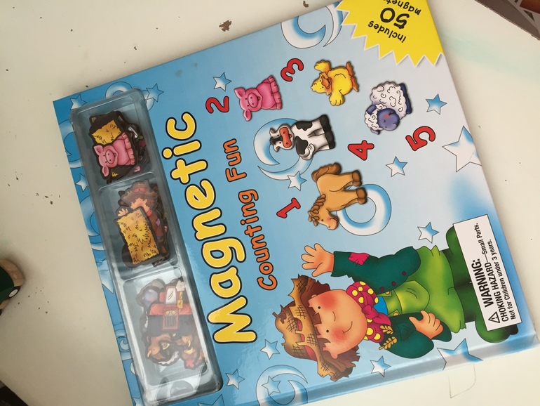считали животных в магнитной книжечке, цифры называли на русском и английском
