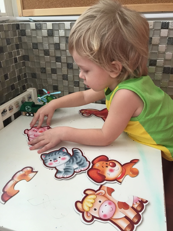 потом пособирали пазлы, повторили тему "мамы-малыши", пазлы неубиваемые, им больше пяти лет, а они как новые)