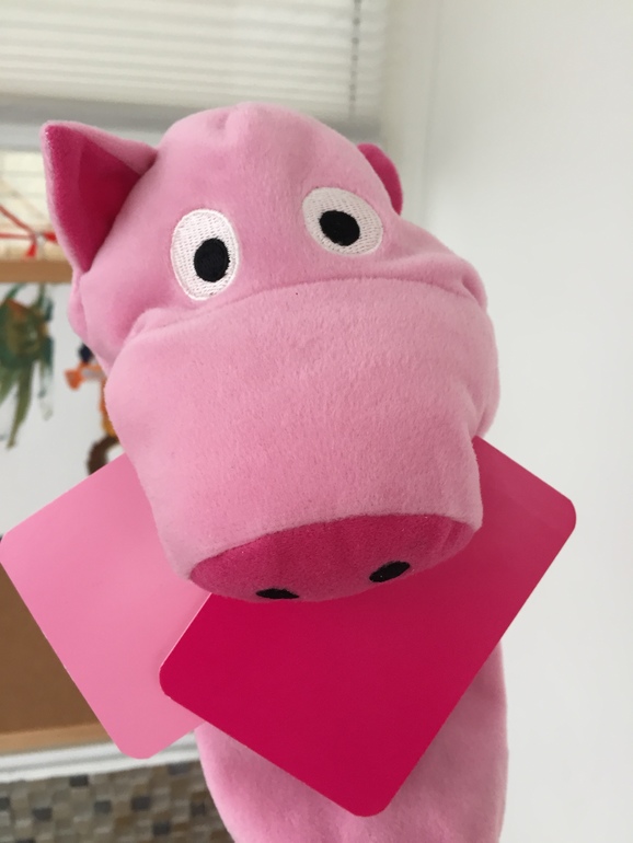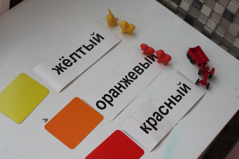 а потом Степаша подбирал цвет поросенку и оттенок носика и ушек при помощи карточек из комплекта ТсП