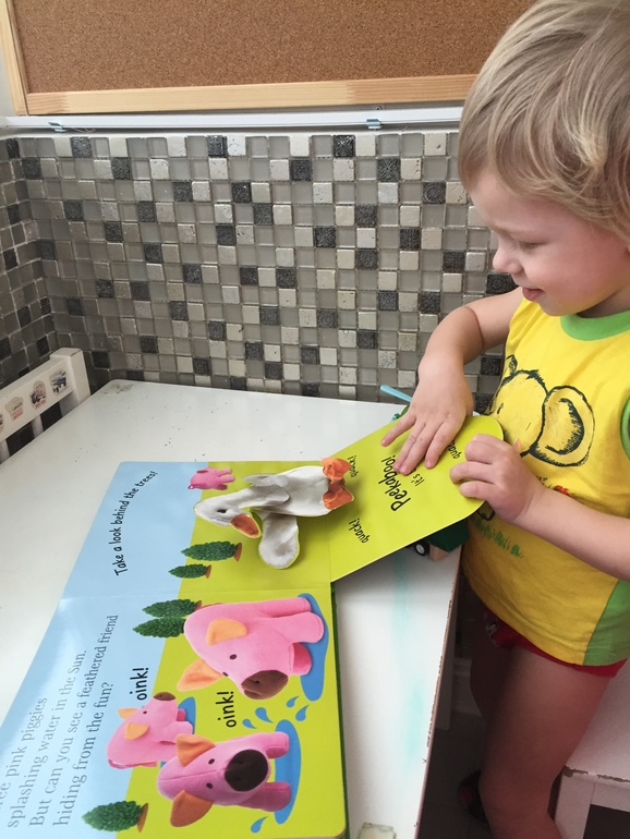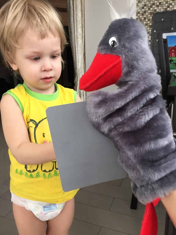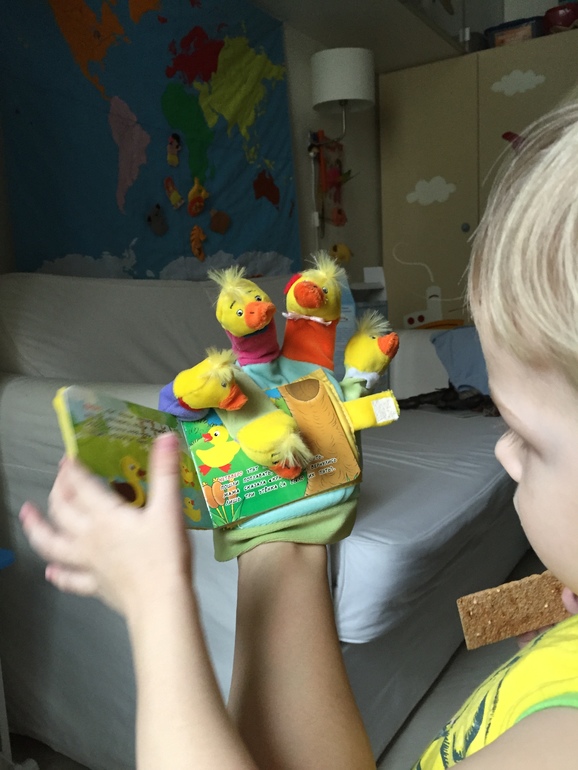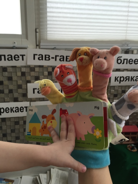 еще у на есть замечательная игрушка перчатка с домашними животными, называли животных на английском, пели веселую песенку)