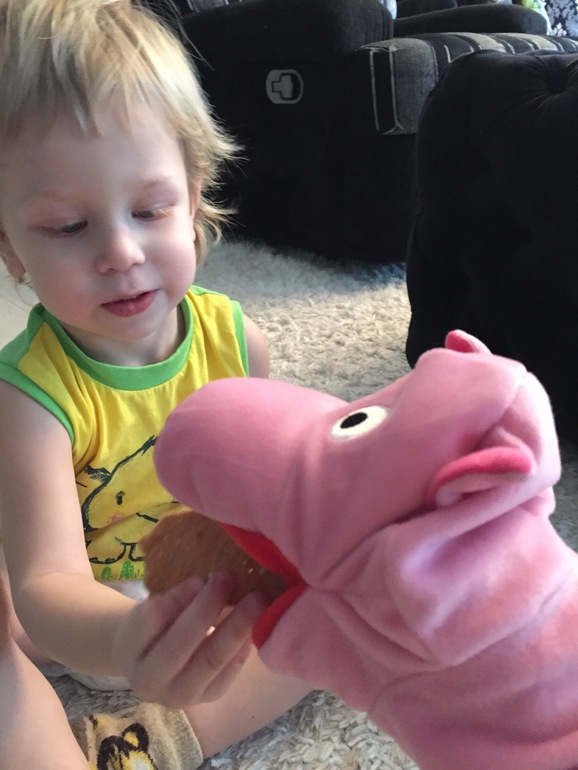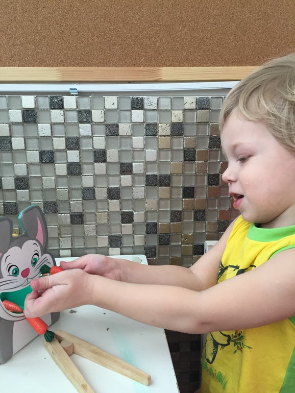 повторили кто что ест, кормили животных, но прищепки оказались туговаты для маленьких пальчиков, я помогала открывать, а Степа кормил)