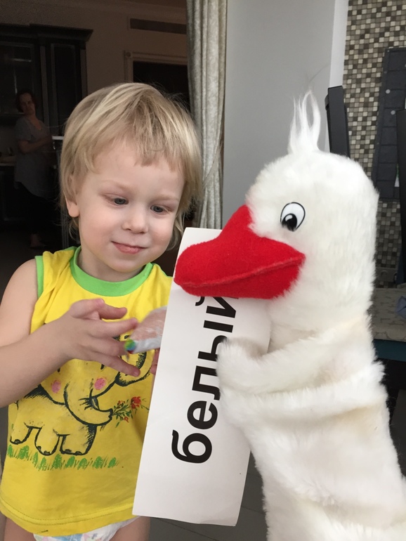 спели любимую "жили у бабуси" и подарок гусям, соответственно белому и серому, Степик подарил карточки с названием цвета и самим цветом