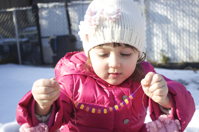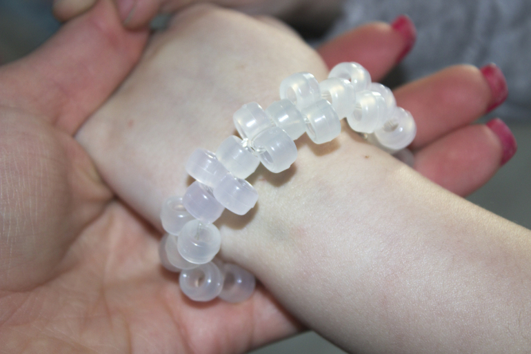 Из этих бусинок впоследствии мы сплели фенечки, которые в помещении постепенно обесцвечиваются. Получились у нас детекторы УФ лучей)))