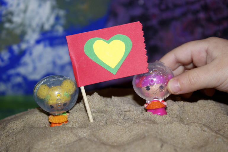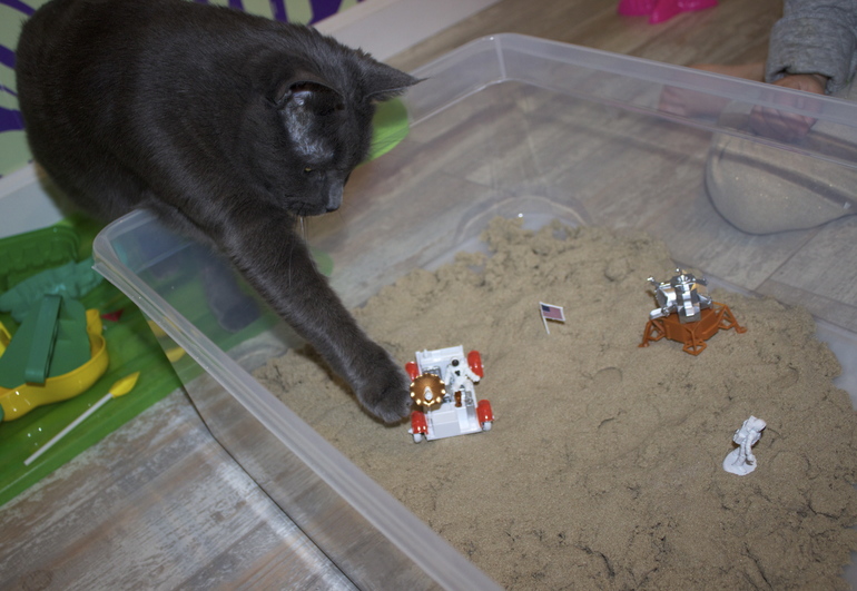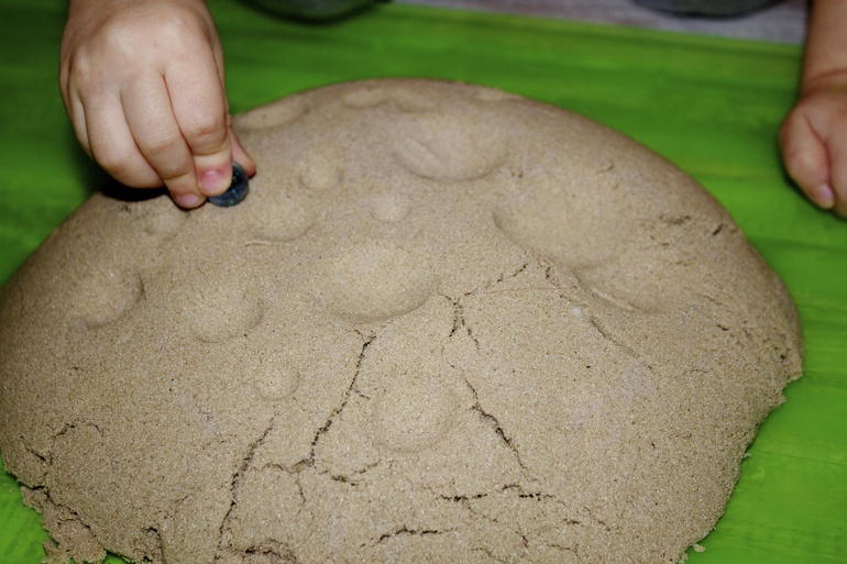Вооружившись тазиком раных шаров астероидов, Ася наблюдала как они оставляют вмятины на поверхности Луны.