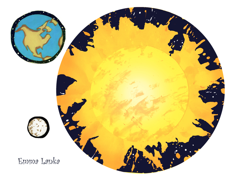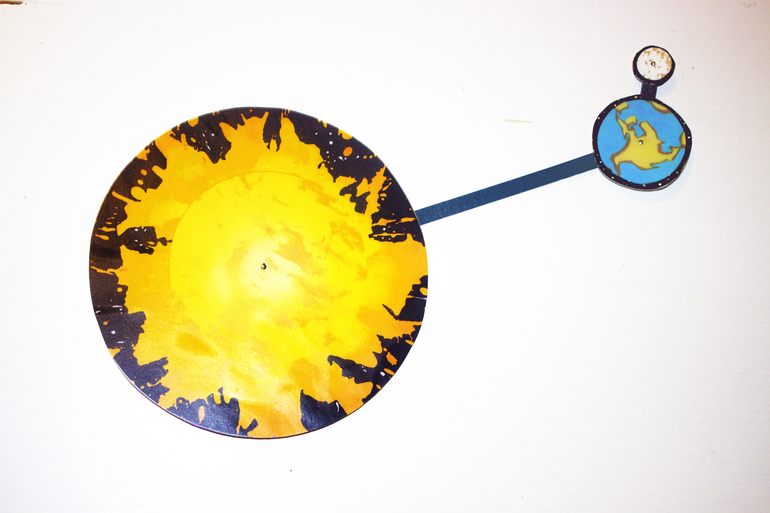 1.Луна- спутник Земли. Она вращается вокруг нашей планеты ( вто время, как Земля в свою очередь вращается вокруг Солнца). Вот такую наглядную поделку, где все небесные тела вращаются, я смастерила для дочки, после того, как увидела идею в сети. Нарисовала Солнце, Землю и Луну,