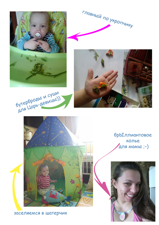 Вместо сапфиров синюю звездочку разрезали, а алмазы заменили бисером)) Укроп нам Давыд надербанил, мы его, кстати, познакомили еще и с пластилином. В пластилине было все детское кресло, пол, руки, лицо, хорошо хоть роток был занят пустышкой))