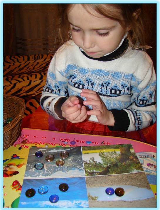 Вот мы и разложили капельки по разным местам . Здесь я немного усложнила Даше задачу - сначала у нас было небольшое задание на внимательность - я говорила, "Капелька упала не на дерево, не в море, не в лужу", а Дашина задача была поставить капельку в нужное место. А потом мы немножко потренировались в математике - я называла пример: 1+1, 2+2, 3+2 - а Даша ставила нужное количество капелек на картинку: