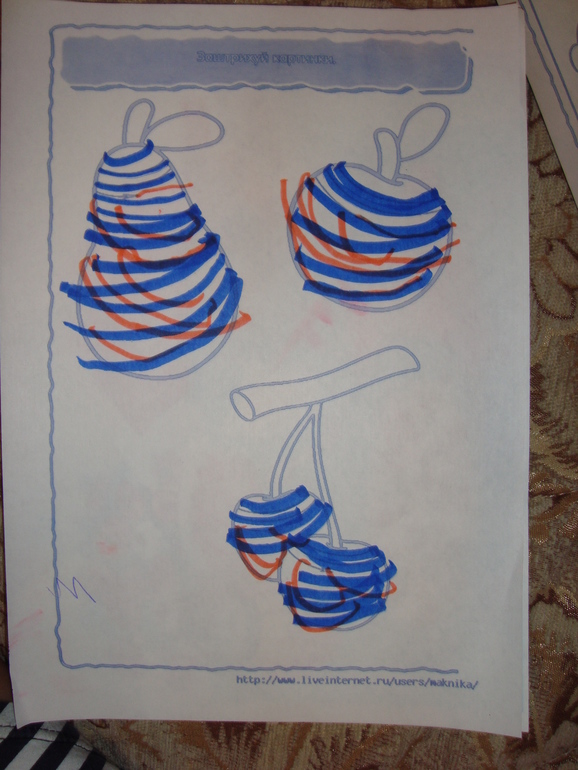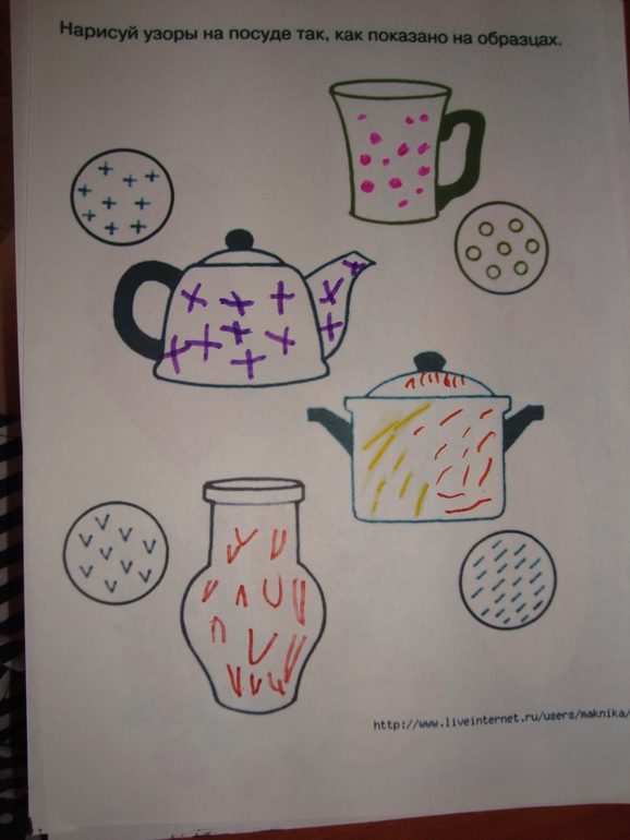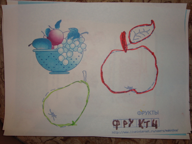 Здесь нужно посчитать фрукты в вазе и написать нужную цифру в кружок. Месяца два назад Тася плохо еще писала цифры, поэтому я написала их сама, а ей нужно было лишь приклеить.