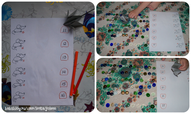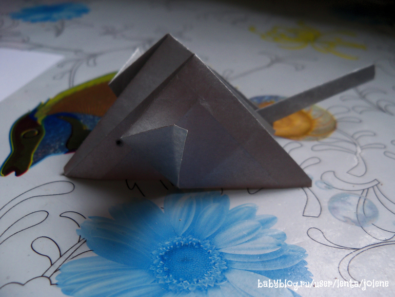 Потом за время дневного сна я Миру набросала несколько заданий и соорудила мышку-оригами (схема есть в материалах). Вот такую.