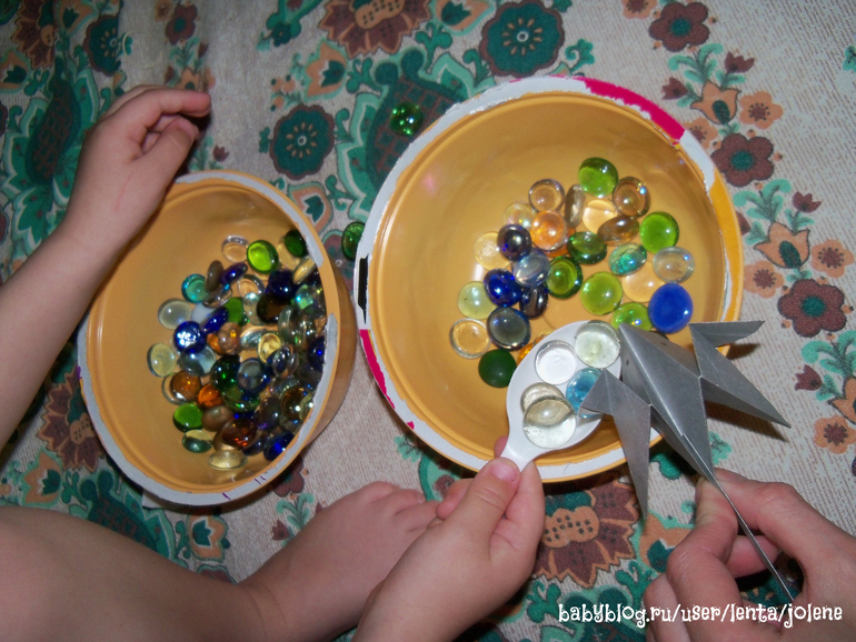 Покормил мышонка стеклянными камушками из ложки, заодно и пересыпал все из одной в другую.