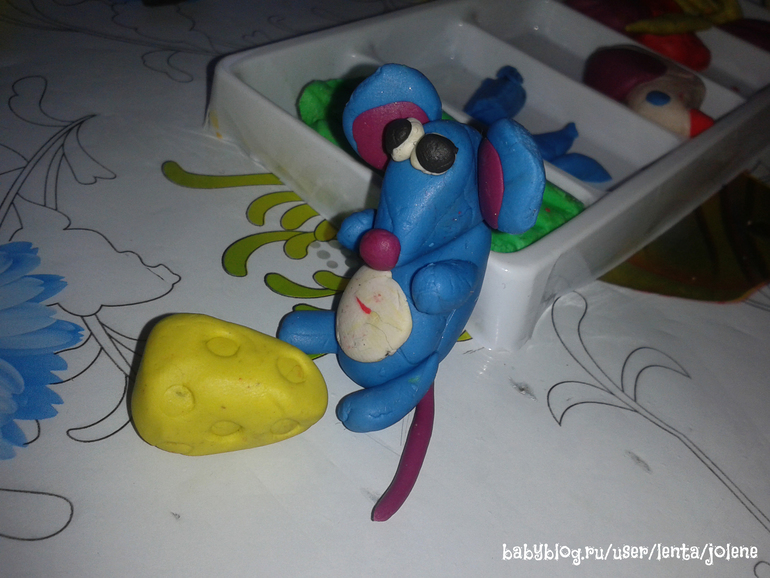 Конечно, лепила я, а Мир в это время занимался с пластилином по своему усмотрению. В принципе, изначально была цель - просто полепить, а чтобы мне не было скучно лепить стомилионный вагончик, я взяла пособие и выбор пал на мышонка. Правда, в процессе я обращала внимание сына на то, что делаю.