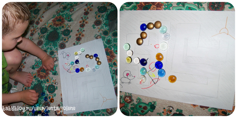 Проводилки и лабиринт Мир сделал на ура. Причем лабиринт и пальчиком, и карандашом, и камушками делал.