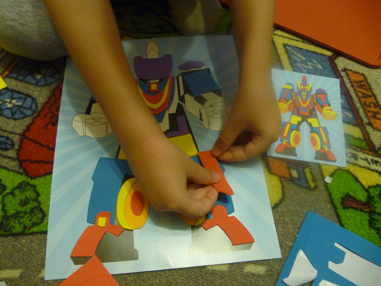Тематические дни/занятияСпециально занятия на эту тему я проводить не собиралась, просто так совпало... Сначала мы просто решили сделать из напольной мозаики трансформеров (случайно попались на глаза примеры).