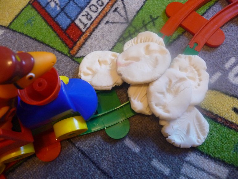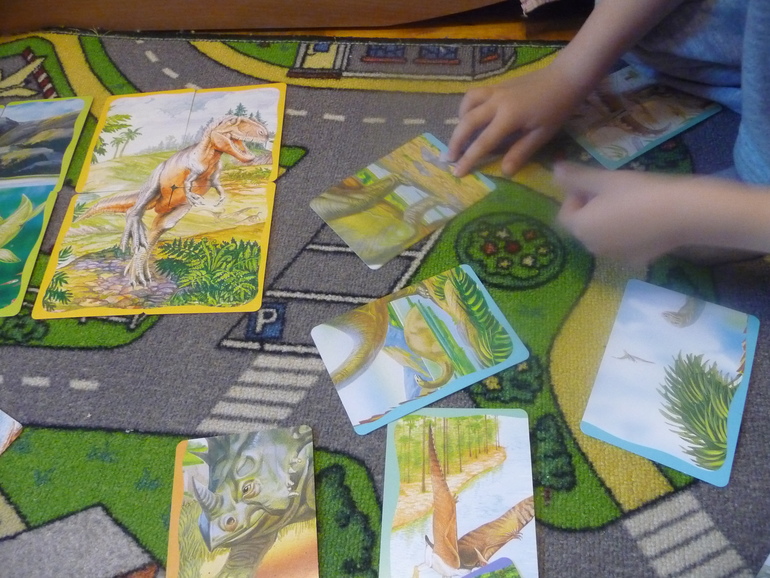 Удивительно, но Ромка знает очень много различных видов динозавров! Оказалось, благодаря мультику "Поезд динозавров" : )) Сложили картинки-пазлы, поиграли в игры описанные в аннотации к карточкам.