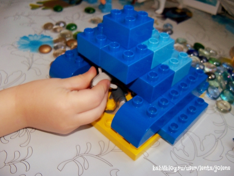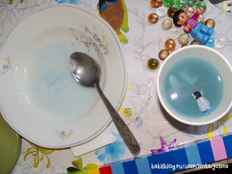 Причем купались в различных емкостях, а Мир переливал воду туда-сюда. Без поезда не обошлось, хорошо хоть Мир ограничился только его постройкой. Всё-таки льдина ребенка увлекла не на шутку.