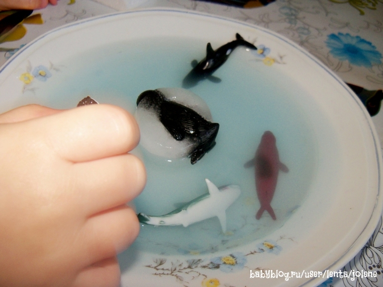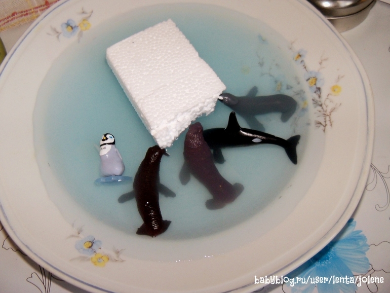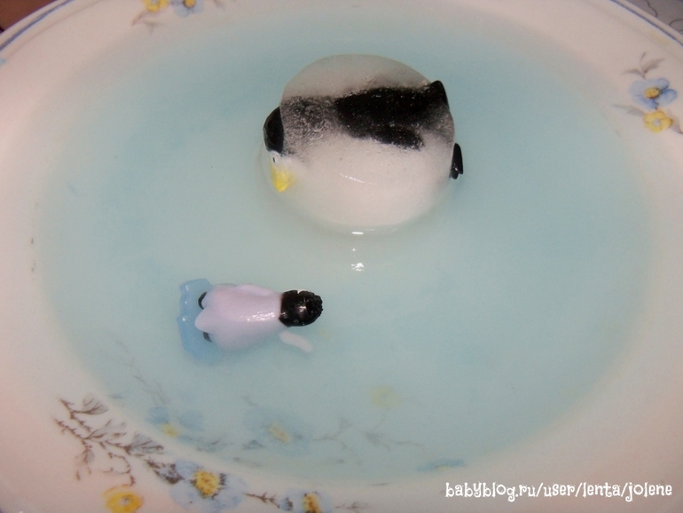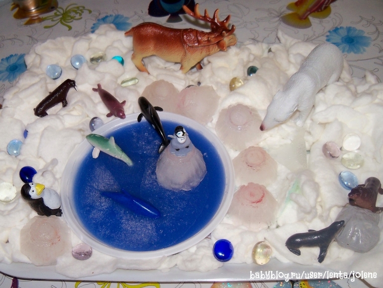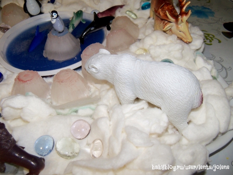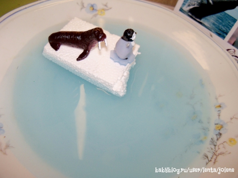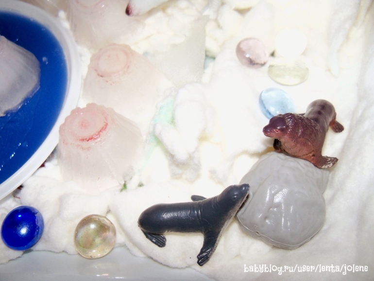 Животных мы еще замораживали и размораживали, рисовали северное сияние цветным льдом, слушали песенки.