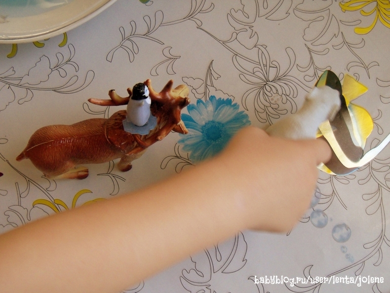 Я прочитала Миру стих, а потом предложила пингвинчика Лоло отправить в плавание.