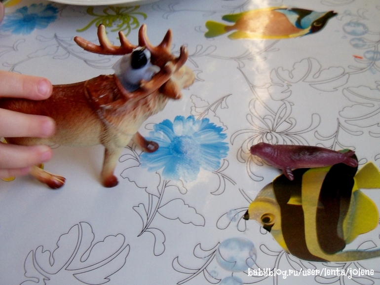 Этот момент Миру особенно понравился, и сын довольно долго просто катал пингвина на олене.
