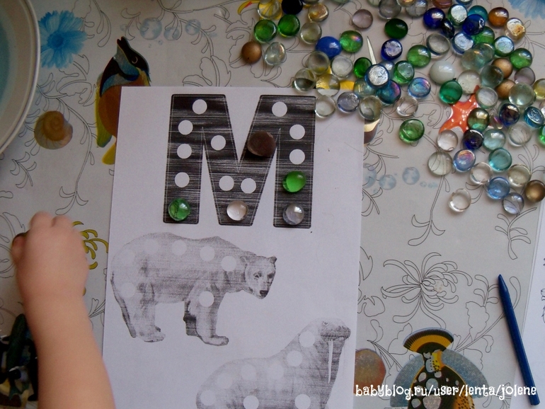 В качестве благодарности морж подарил нашим друзьям россыпь "цветных льдинок", которые мы использовали, чтобы залатать букву и подлечить медведя и моржа.