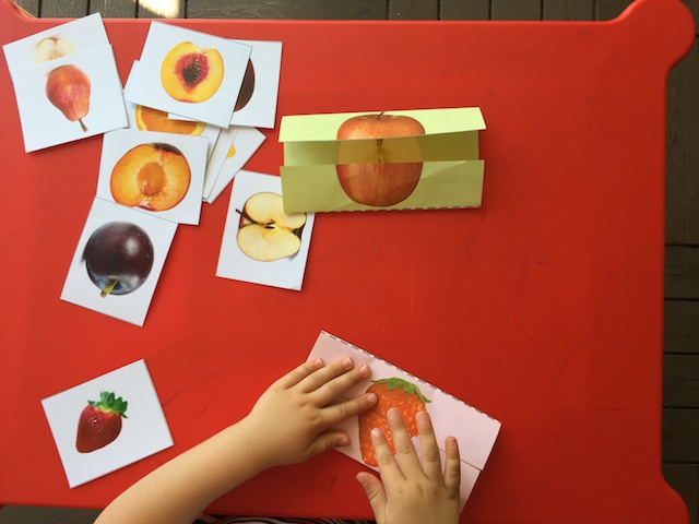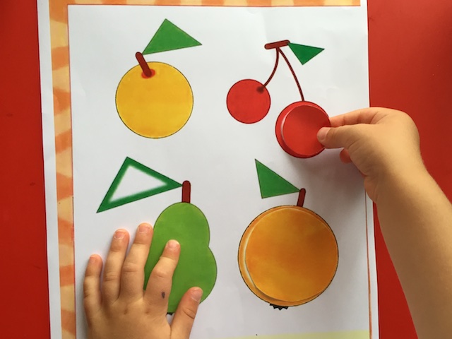 Теперь, когда парочки подобрали, можно и самим фрукты "порезать" (мелкая моторика).