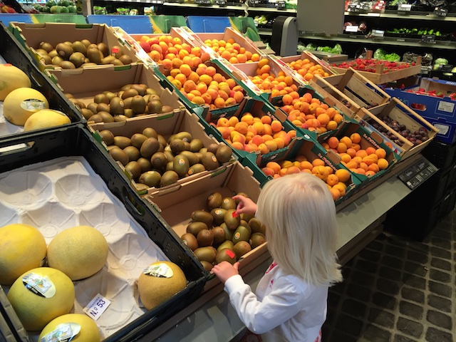 В идеале я бы сделала основой занятий дегустацию вкусных даров природы. Но Настя не любит ни ягоды, ни фрукты, кроме яблок и бананов. Поэтому мы начали с того, что пошли в овощной отдел супермаркета и внимательно изучили весь ассортимент.