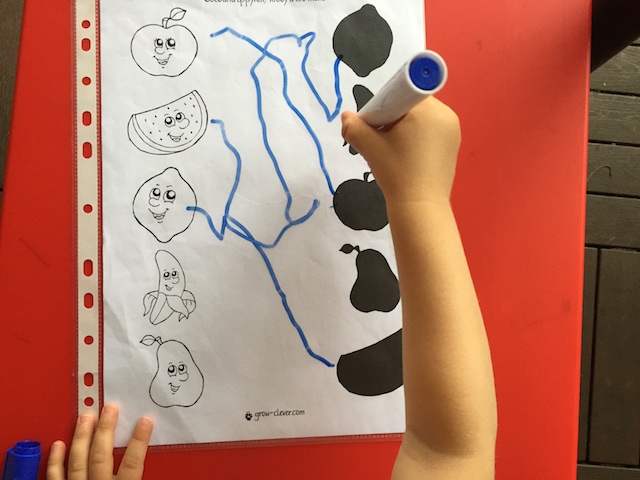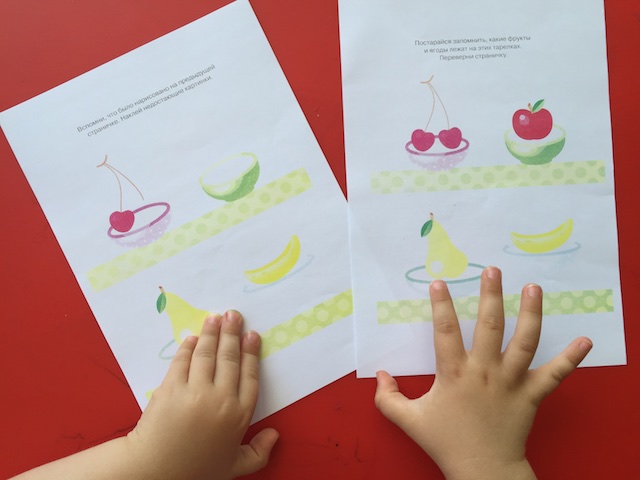 На следующий день, как только пришли на дачу, Настя потребовала продолжения. И, конечно, прибежали фрукты и попросили помощи: найти каждому тень (с сайта grow-clever.com, у них есть очень хорошие тематические комплексы)
