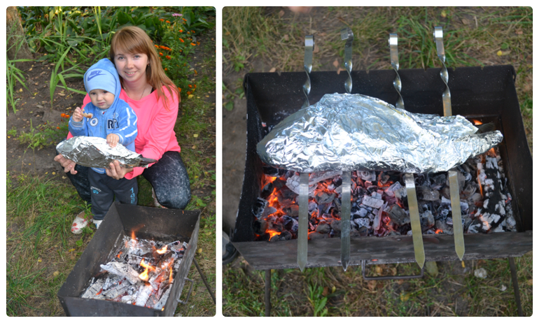 В тему рыбок мы пожарили на мангале карпа. Так сказать закрепив понятие рыбка, на практике. Попытались выучить еще один стишок с пальчиковой гимнастикой.