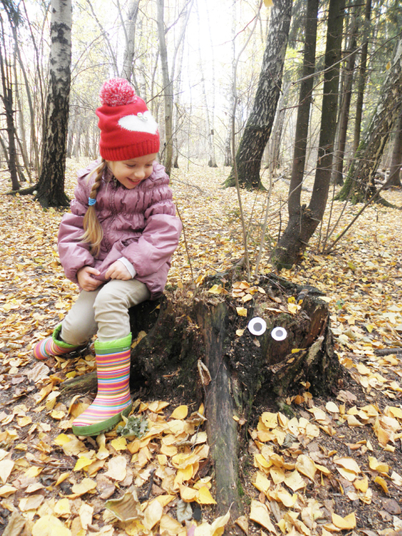 А еще огромное спасибо блогу за идею с игрой «оживлялкой» (и другие идеи тоже , всегда зачитываюсь!!!) - берем такие глазки и украшаем пеньки и стволы деревьев, у всех нас и у прохожих тоже сразу поднимается настроение, а лес в действительности становится как живой!