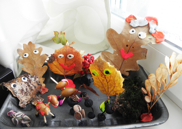 Рыбы из листьев (Настя, еще раз спасибо за идею с раскрашенными листиками-рыбками!):
