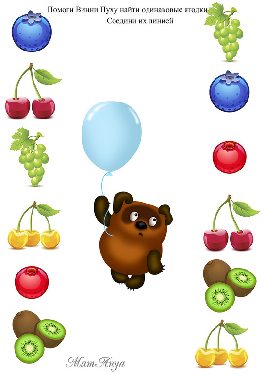 Я ему дала мисочки с фруктами и ягодами, надо было выбрать только ягоды.