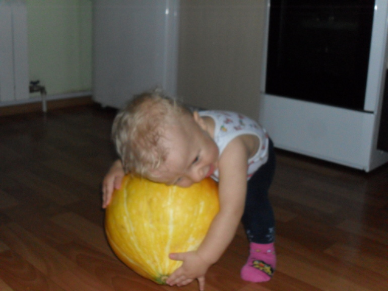 А еще мы конечно делали осенние букеты, играли в осенние находилки на прогулках, пекли яблочные пироги, делали заготовки на зиму, Вот такую тыкву вырастили.