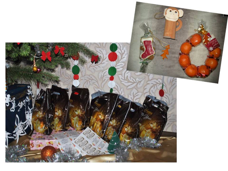 В этом году готовили подарочки знакомым и родным, готовили много и спонтанно, вот шли куда и собирали. Деткам собрали в пакеты и отправили почтой: сладости, поделки и книжечки.