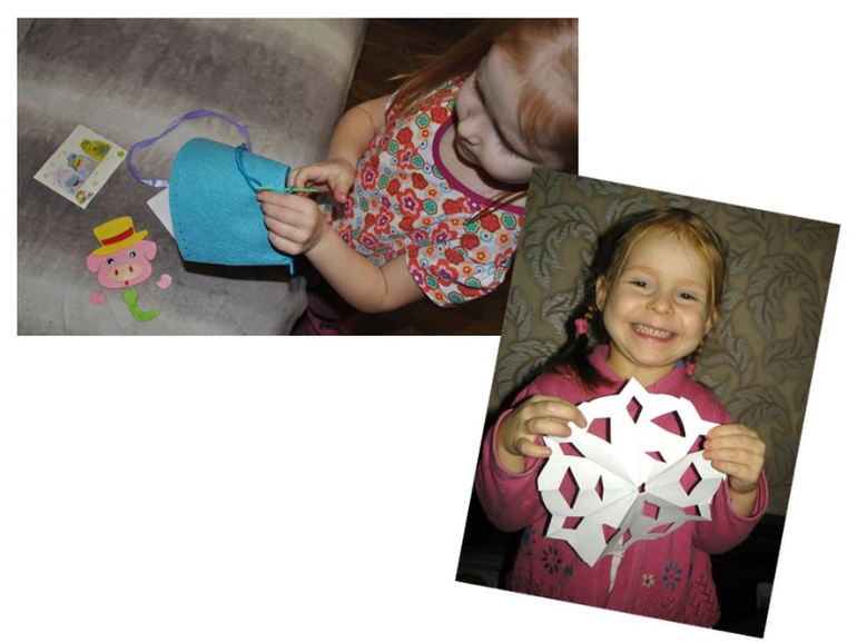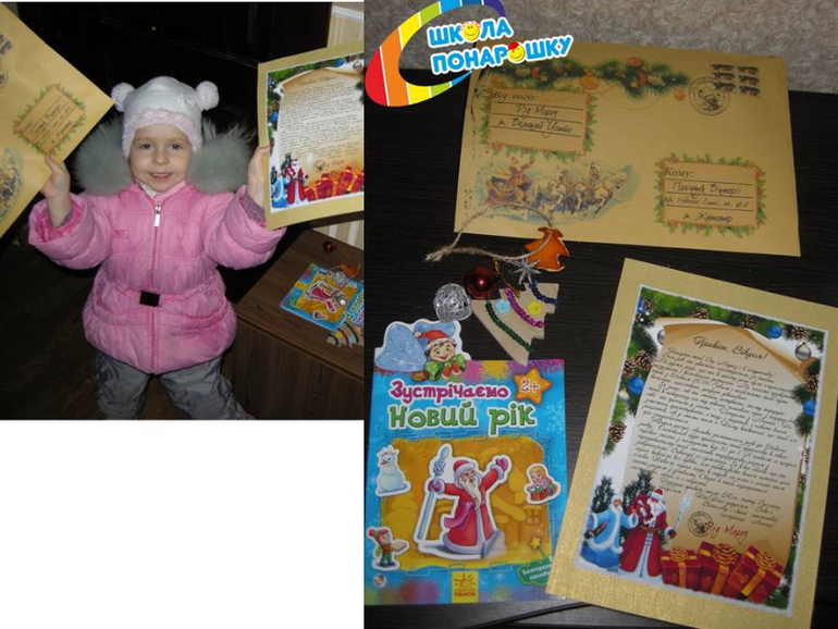 Последующие дни Снеговик приносил каждое утро (иногда вдень, если не успевал)))подобные наборы. Домик, письмо с описанием и наклейкой, а также подарочек и задания, иногда они распечатаны или просто написаны в письме