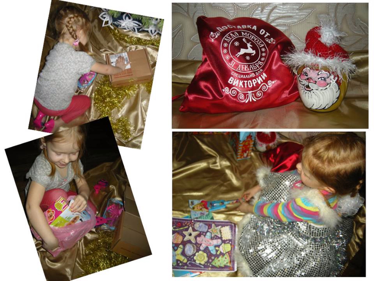 Вечером перед Новым годом Вику ждали несколько различных заданий от Деда Мороза, а с утра под елками (в ее комнате есть тоже) она нашла первые подарки, ну а потом день за днем от родственников и знакомых снова были подарки) Вот мы сфотографировали на 3-й день нового года с тем, что собрали)