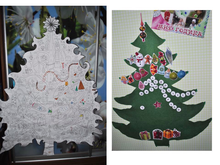 Раскраска и елочка из фетра, для создания гирлянд-слов.