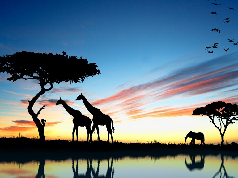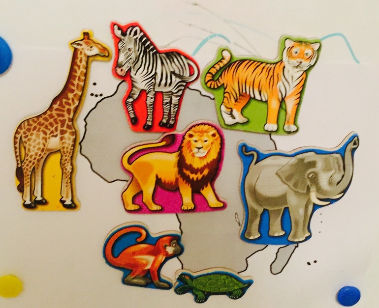 Итак, самое первое знакомство с Африкой мы начали с понятия материк, повесили шаблон на магнитную доску и начади вспоминать какие животные населяют Африку.