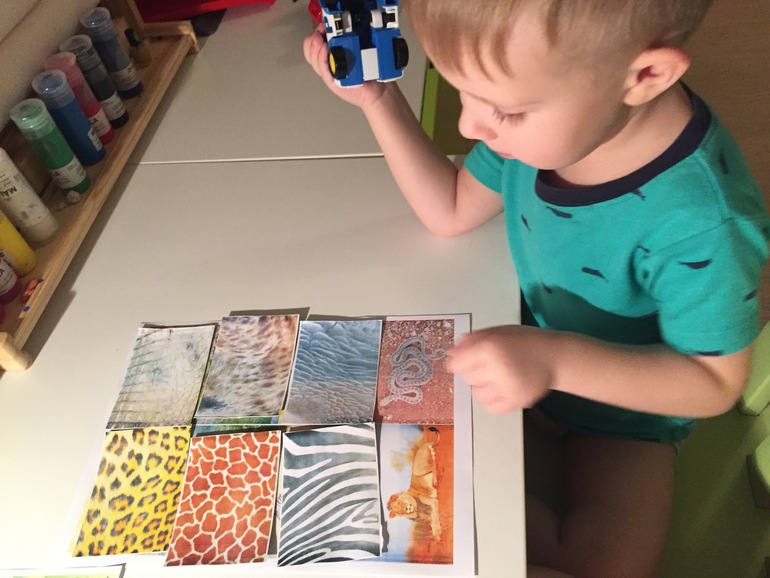 - а вот ещё очень интересное и необычное лото, восторгу сынишки не было предела: нужно было разложить шкурки животных по хозяевам