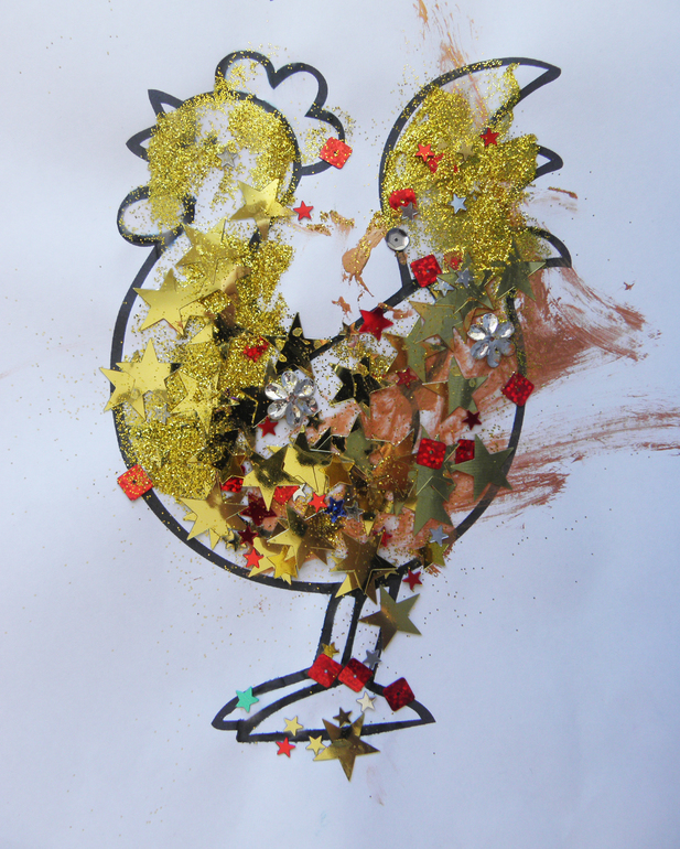 Для Лизы покрасить-посыпать блестками заготовку Петушка, уж очень любит это дело с посыпаниями блестками! Потом конечно пылесос мне в руки...: