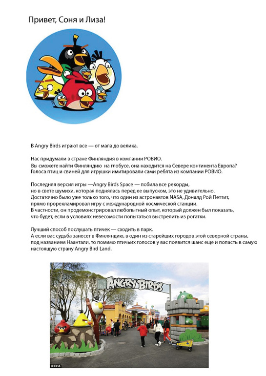 Играли в свое время и муж, и я))) Дети в курсе, кто такие, от более старших друзей узнали и немного зафанатали тоже. Так что письмо тоже было готово (рассказала, как и кто придумал птичек):
