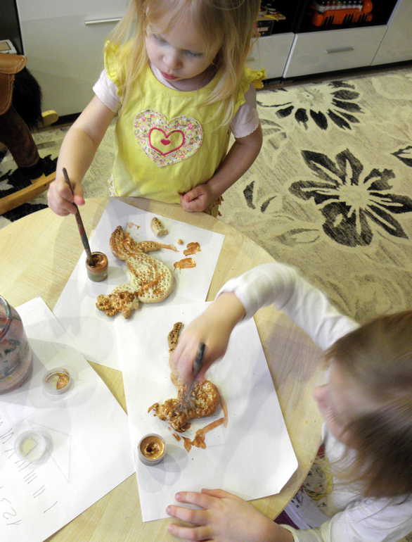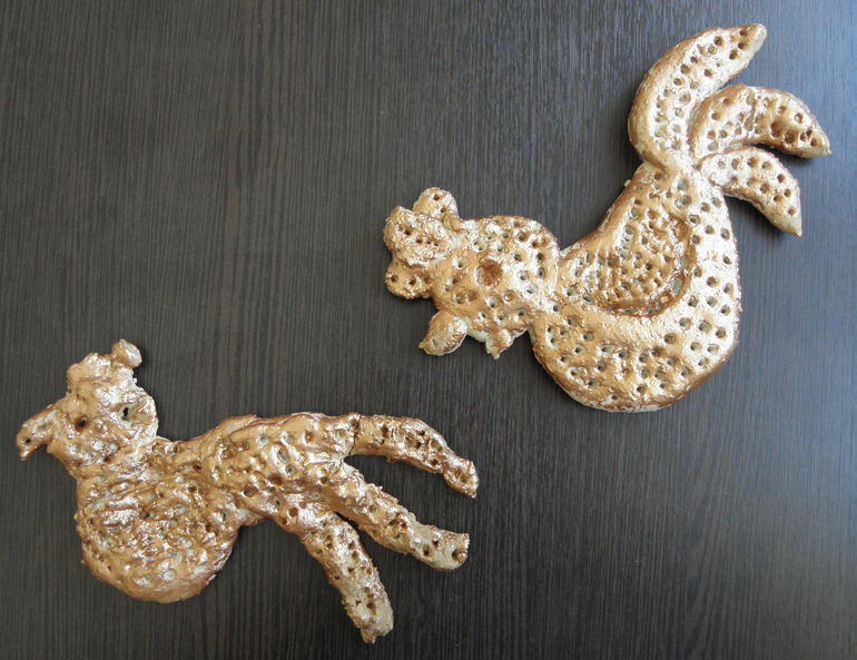 Полепили Золотых петушков из соленого теста, покрасили золотой краской: