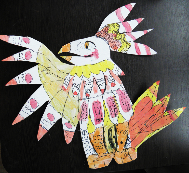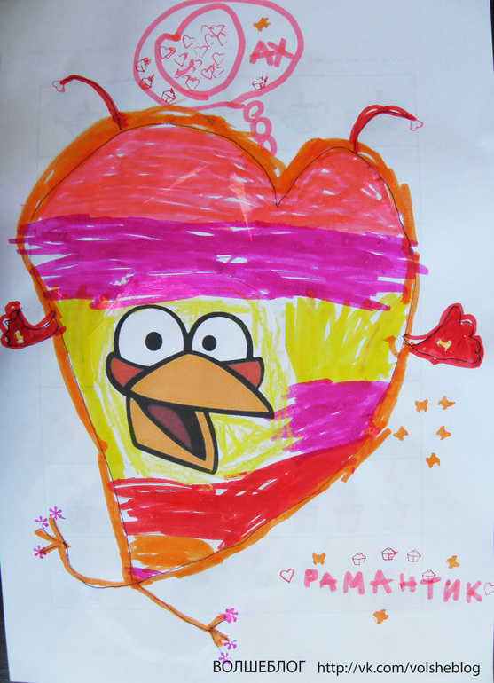 дала Соне распечатанные глаза в стиле Angry Birds, задача - представить себя разработчиком компьютерной игры и придумать новых героев-птичек, каждого со своим характером и возможностями. Вот такие новые герои появились: