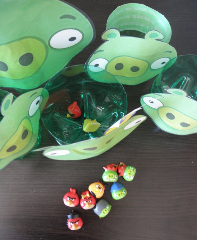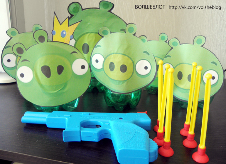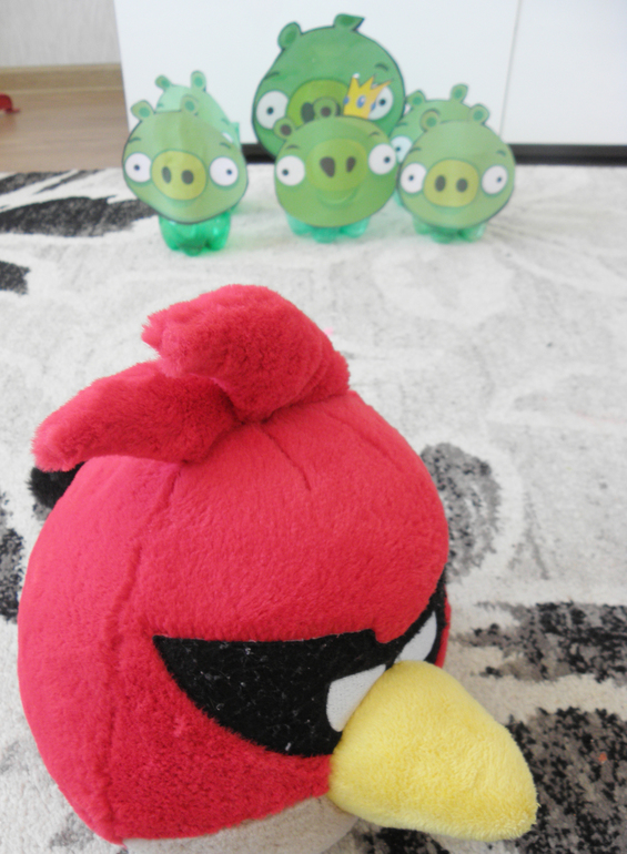 Просто швыряли нашу игрушку - Реда в бутылки-свиней, собственно цели такие же как в игре - сбить свинячью свинью, чтобы освободить яйца: